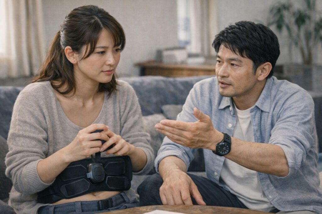 ある利用者は、施術中に大量の汗をかき、終了後も体がしばらく温まっていたと感想を述べていました。また、翌日には腹筋周りに軽い筋肉痛を感じることもあり、普段使っていない筋肉がしっかりと動いていることがわかります。このような変化は、運動経験が少ない方にとって「自分でも続けられそう」という安心感につながっているようです。